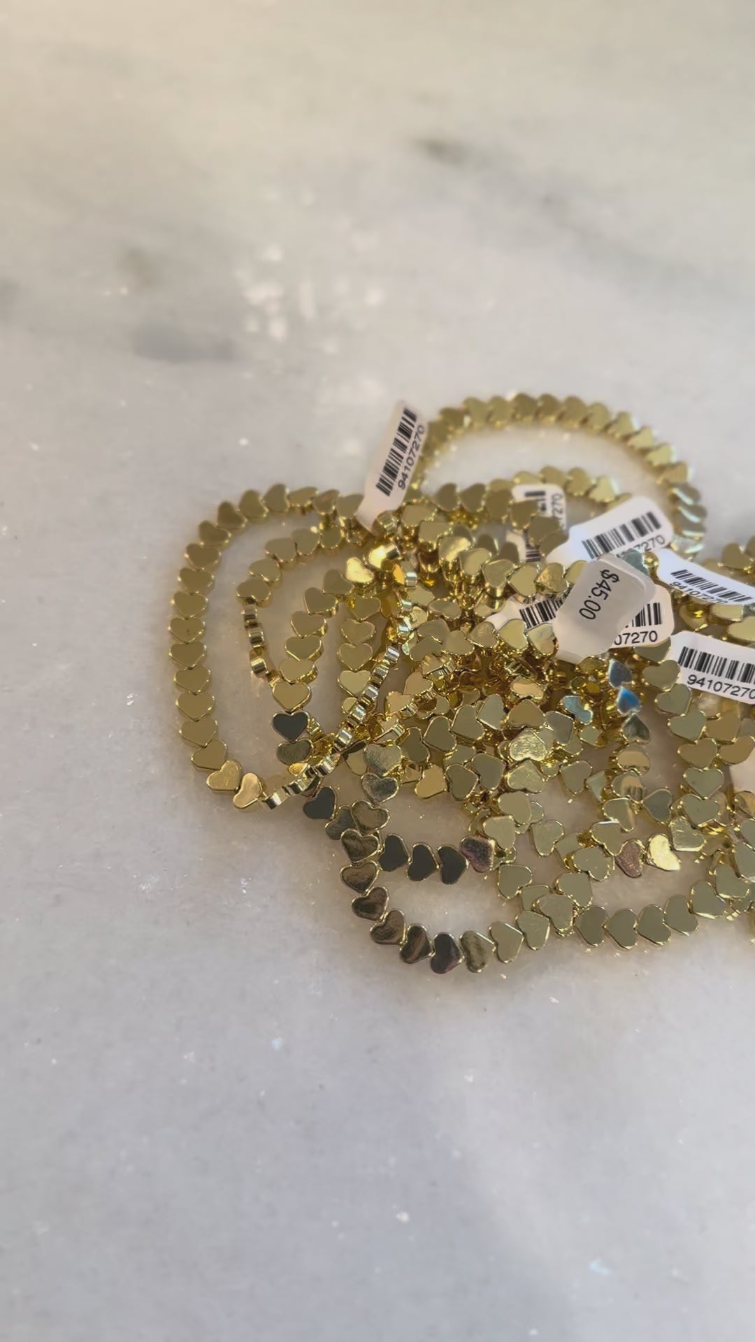 Add texture and shine to your stack with this metal beaded heart bracelet.