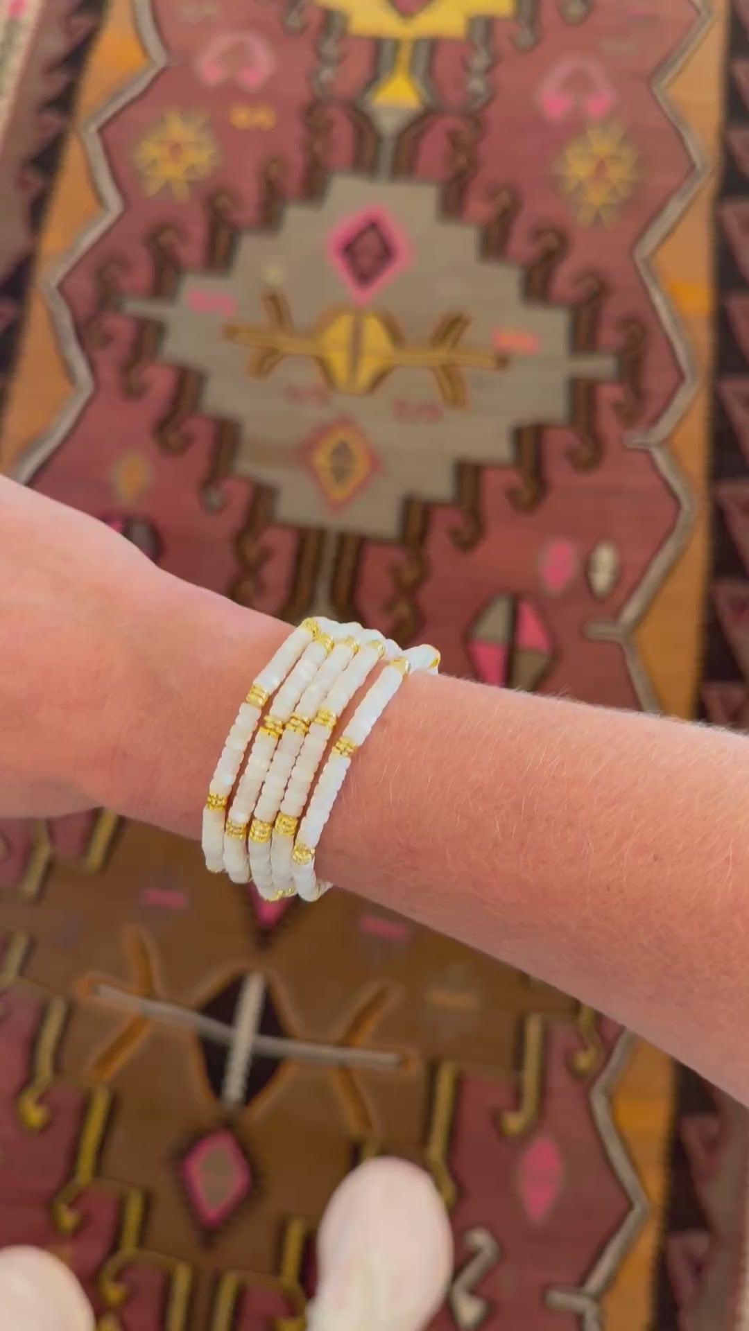 - Material: mother of pearl beads with 18K gold accents